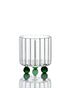 Nízká sklenice atypického tvaru inspirovaná postmoderní architekturou. Každý kus je ručně vyroben v Itálii mistry skláři z vysoce kvalitního borosilikátového skla. Vroubkované skleněné tělo spočívá na třech kouličkách, které hravě pozvednou jakýkoli nápoj. Skvěle se hodí na koktejly a destilované nápoje, například whisky.