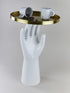 The original Hände Hoch tray from the Qubus studio by Jakub Berdych Karpelis is a bold expression of a sophisticated yet minimalist style, combining a modern look with functionality. A porcelain hand juggles a tray on the ring finger . Combining pure white porcelain with a brass tray, this fascinating piece will be your favorite. As a fresh decoration, the Hände Hoch tray will add style and artistic vibes to any interior. It can also be used practically for jewelry or other small items. In any case, this is a unique work of art that you don't want to miss. In the Hände Hoch collection you will also find a sconce and a toilet mirror , which is followed by a series of table and wall lights. They look great together and individually. The art design collection refers to the aesthetics of the extinct world of clowns and scammers from the circus environment of František Tiché's paintings.