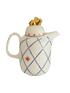 Gunia ceramic teapot with a golden plated lid in the shape of a rabbit. The hand-painted motif is inspired by Ukrainian naive drawings. Ideal for special occasions and everyday use. Made from porcelain.