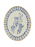Hand painted blue oval Gunia plate with summer motif of mermaids and fish, inspired by Ukrainian naive drawings with memories of summer and dreams. It has golden details and edges. Ideal for special occasions and everyday use. Made of porcelain.