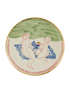 Hand painted green and blue Gunia plate with summer picnic motif and golden details in the edges inspired by Ukrainian naive drawings with memories of summer and dreams. Ideal for special occasions and everyday use. Made from porcelain.