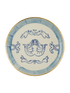 Hand painted blue round Gunia plate with mermaid motif and golden plated details in the edges inspired by Ukrainian naive drawings with memories of summer and dreams. Perfect for special occasions and everyday use. Made from porcelain.