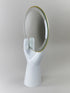 The extravagant Hände Hoch mirror from the studio Qubus by Jakub Berdych Karpelis is a perfect combination of functionality and fresh aesthetics and is guaranteed to add flair to any room in your home. A porcelain hand adjusts a mirror on the ring finger . A minimalist and at the same time sophisticated piece of art stands out with the perfect combination of pure white porcelain with matte brass details. A useful and at the same time stylish and decorative toilet mirror will surely win you over with its elegance . Look into it on your face and also look into the interior of your soul. In the Hände Hoch collection you will also find a candlestick and a brass tray , which are followed by a series of table and wall lights. They look great together and individually. The art design collection refers to the aesthetics of the extinct world of clowns and scammers from the circus environment of František Tiché's paintings.