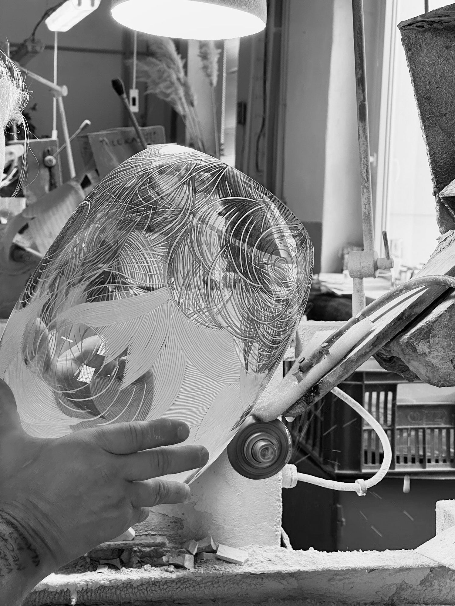 Every object in the collection begins with a hand-drawn motif by Kateřina and is brought to life through Rückl’s masterful artistry—hand-blown, hand-cut, and etched with meaning.No two pieces are ever the same, just as no two souls share the same bond.