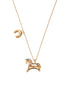 Lucky Pendant Gold-plated and Enamel. The pendant design is inspired by the shape of an authentic wooden toy horse, accented with a naïve-styled horseshoe. The jewelry piece is crafted in gold-plated silver and incrusted with zirconia gemstones. The enamel coating requires hours of meticulous craftsmanship. In traditional Ukrainian culture, the horse was considered a loyal companion of warriors, a symbol of vital force and protection. Wear it as your favorite jewelry or a modern talisman; choose it as a meaningful gift that brings good memories and good fortune.